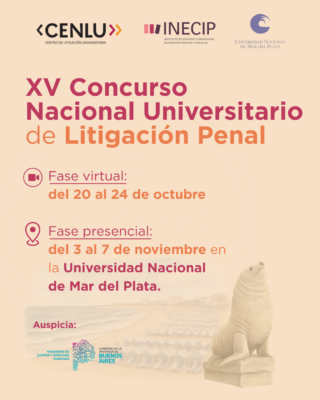 Hoy, lunes 20 de octubre, comienza la etapa virtual de la 15° edición del Concurso Nacional Universitario de Litigación Penal organizado por el Instituto de Estudios Comparados en Ciencias Penales y Sociales (INECIP) y su Centro de Litigación Universitaria (CENLU).