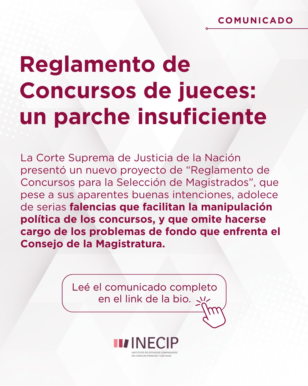 La necesidad de un nuevo Reglamento de Concursos no es nueva. Entre otra decena de proyectos, el estamento académico del Consejo de la Magistratura presentó uno de altísima calidad técnica en 2022, con la firma de los/as consejeros/as Pamela Tolosa, María Fernanda Vázquez y Diego Molea. Organizaciones de la sociedad civil como INECIP, ACIJ y el CELS realizamos aportes a ese proyecto. Sin embargo, esos proyectos fueron dejados de lado durante los 4 años de presidencia del Consejo que lleva el Presidente de la Corte Suprema.